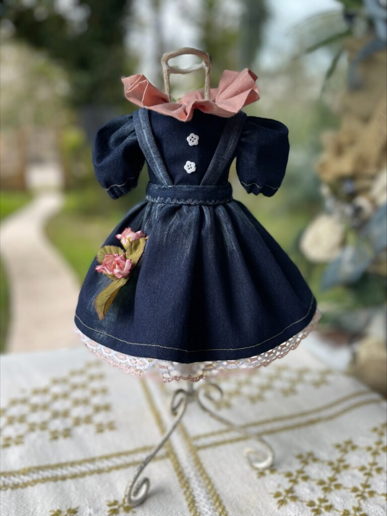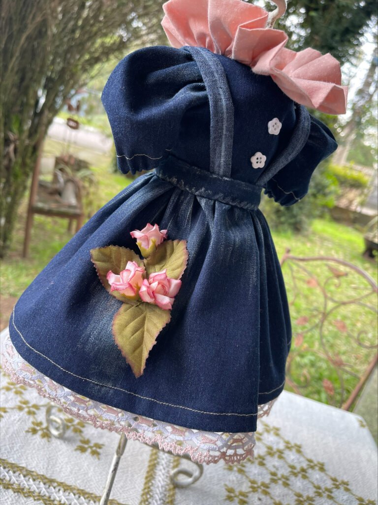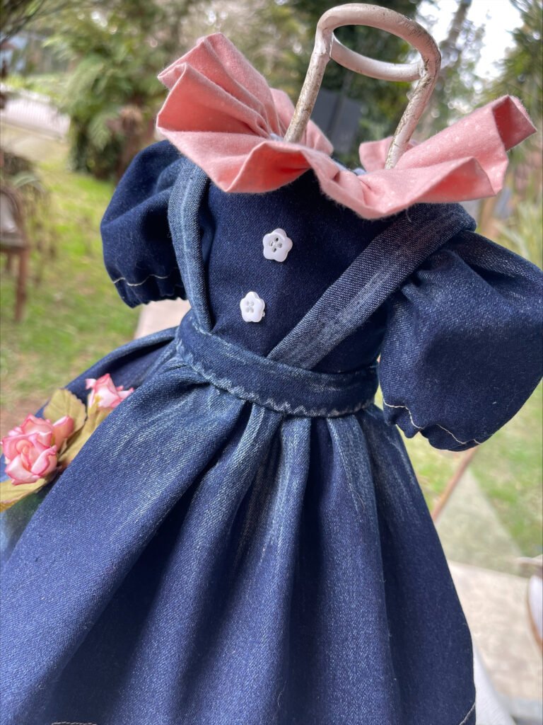Crie um vestido de boneca em jeans com acabamento profissional em 10 aulas-mesmo sendo iniciante.